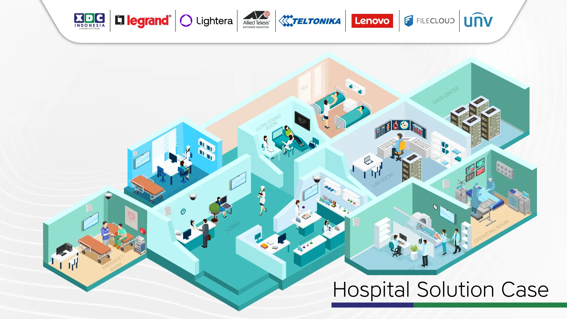 Sebagai bagian dari CTI Group, XDC Indonesia menyediakan solusi IT end-to-end untuk sektor kesehatan. Kami bermitra dengan brand global terpercaya—Legrand, Lenovo, Allied Telesis, Lightera, UNV, Teltonika, dan FileCloud—untuk menghadirkan infrastruktur rumah sakit yang aman, efisien, dan siap menghadapi tantangan era digital.